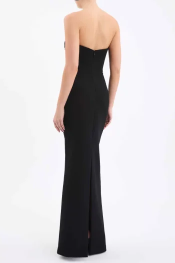 RRP: €920.00| Rent From €180.00Form-fitting style Maxi length Designed for a close fit at the bust, waist and hip Lightweigh Non-stretch fabric Strapless Wrap front Back zip-fastening closure Back hanging train Smooth fabric