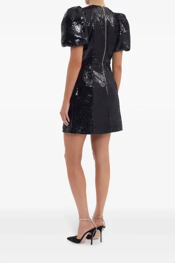 RRP: €990.00| Rent From €150.00Black sequin design Thigh-length Rear zip fastening Round neck Bow detailing Short puff sleeves A-line skirt